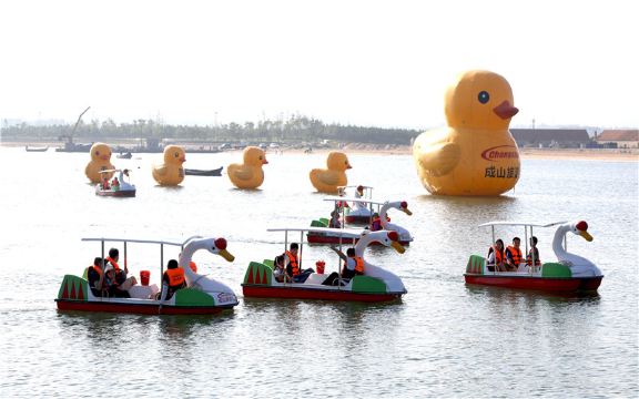 海上观光:爱连湾有海上巴士,游艇,快艇,老爷船,天鹅脚踏船,大黄鸭脚踏船,香蕉船等海上体验船。游客自选出海方式,乘风破浪,游览海洋牧场。