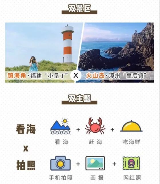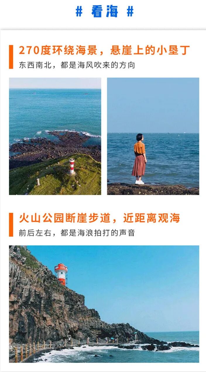 要带着满满的手机内存,满足你一切对春天的美好幻想!刷爆朋友圈,刷爆抖音汇集各种超美元素,出片率100%“来福建,最适合看海的地方必须当属漳州。”因为厦门的海算是内海,海水呈绿色,而漳州的海是玻璃蓝海水。(从厦门出发驱车仅需两小时)不管是想拍照拍个痛快,或者是期待懒人式出行,这里都会带给你很多惊喜。“一半礁石,一半海水”据说火山岛曾经发生过八次以上的火山喷发,在大门出发乘坐观光车,可以直接抵达“火山地学博物馆”。绕过博物馆,从海边木栈道走下去便是一大片的火山石。相信友艇君,如果你来到这,肯定哪哪都想拍一百张.....懒得走路的话,租一辆小机车,飞驰在马路上也是不错的选择。