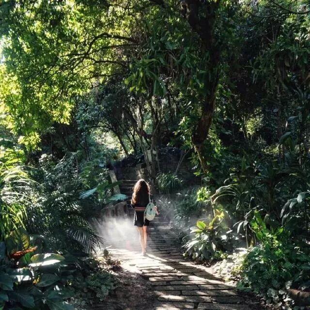 黑色的衣服在植物园也是合适的